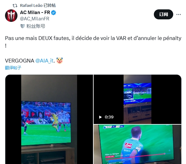 米兰球迷怒斥意裁判协会耻辱🤡,莱奥社媒转发支持
