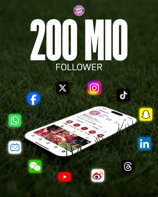 拜仁全社媒粉丝数突破两亿,凯恩诺伊尔等球员出镜感谢球迷支持