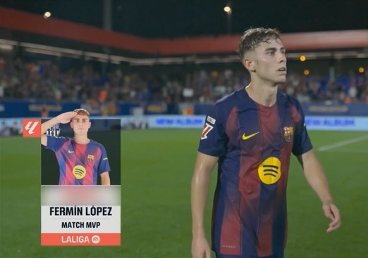 2进球2关键传球,费尔明当选巴萨6-0瓦伦西亚全场最佳球员