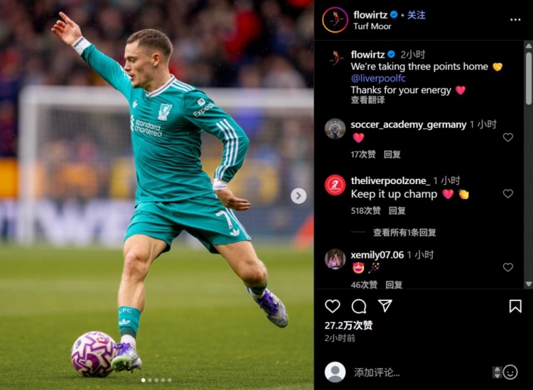 9月15日讯 英超第4轮,利物浦客场1-0击败伯恩利。赛后利物浦中场维尔茨更新社媒,晒出此役比赛照片,并写道:我们带着三...