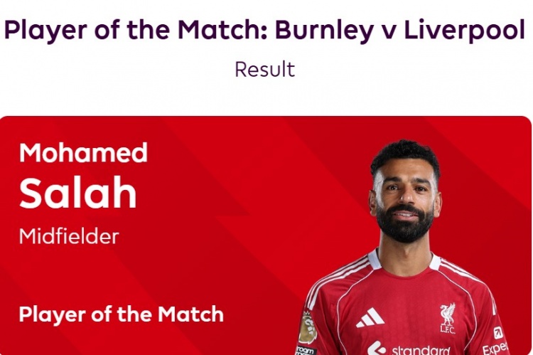 点射绝杀!官方:萨拉赫当选利物浦1-0伯恩利球迷票选全场最佳