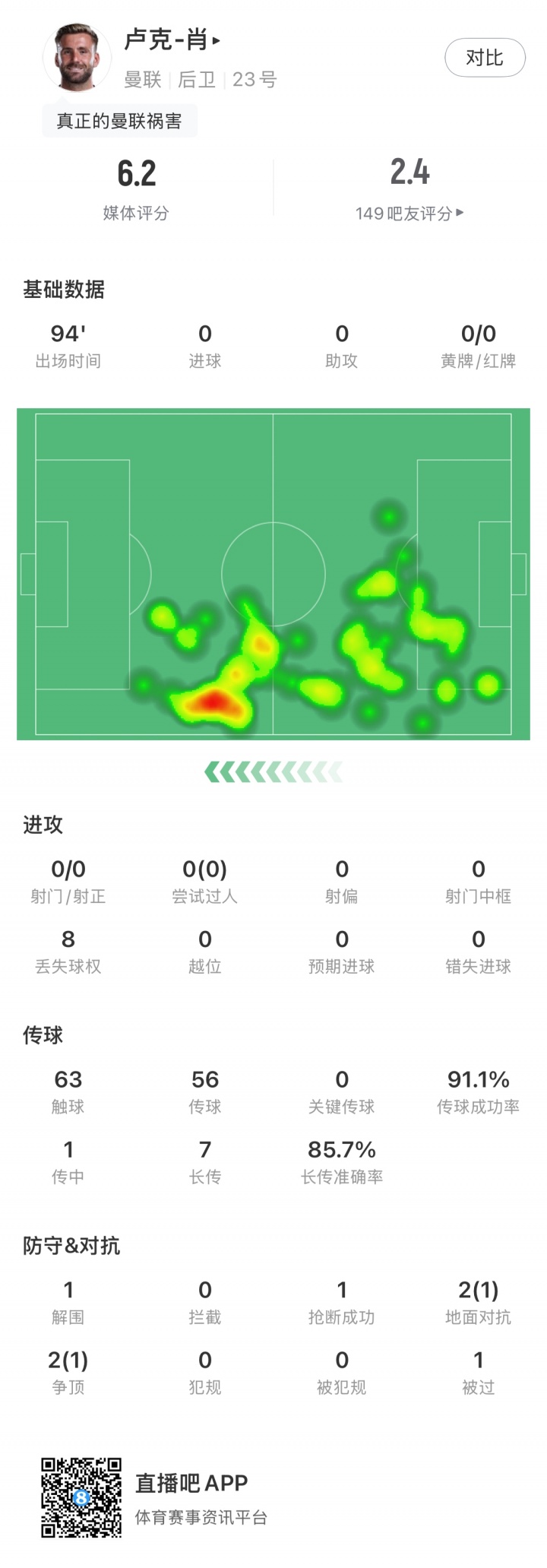 发挥灾难!防不住人、拿不住球,曼联3个丢球卢克肖均有失误