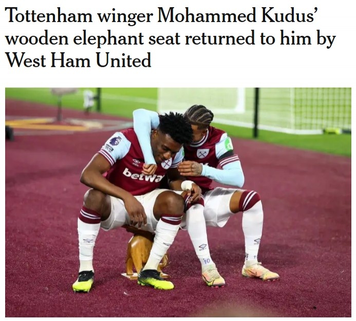 9月14日讯 The Athletic报道,西汉姆将库杜斯以前庆祝用的木凳还给了球员。周末,25岁的库杜斯随新东家热刺造...