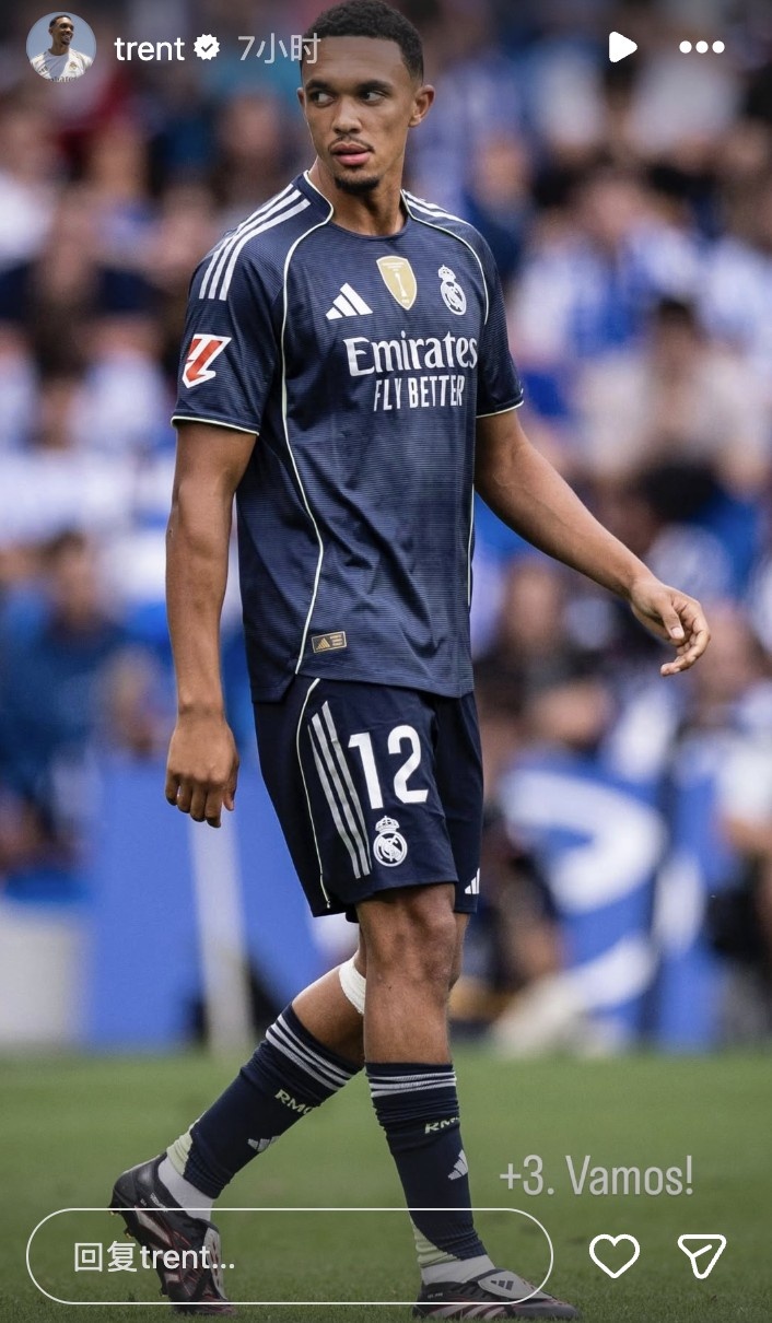 面对皇家社会,替补登场的阿诺德帮助皇马客场全取三分。阿诺德更新社交媒体庆祝胜利:+3,加油!...