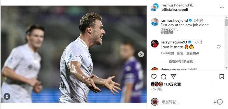 9月14日讯 意甲第3轮比赛,霍伊伦首秀破门,那不勒斯客场3-1击败佛罗伦萨。霍伊伦社媒晒出庆祝进球的照片,配文:“新工...