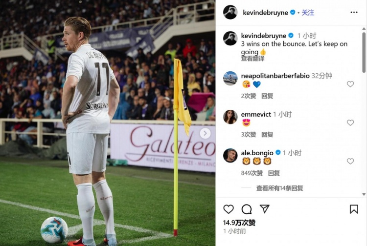 德布劳内更新社媒庆贺胜利:连胜3场!让我们继续加油👍