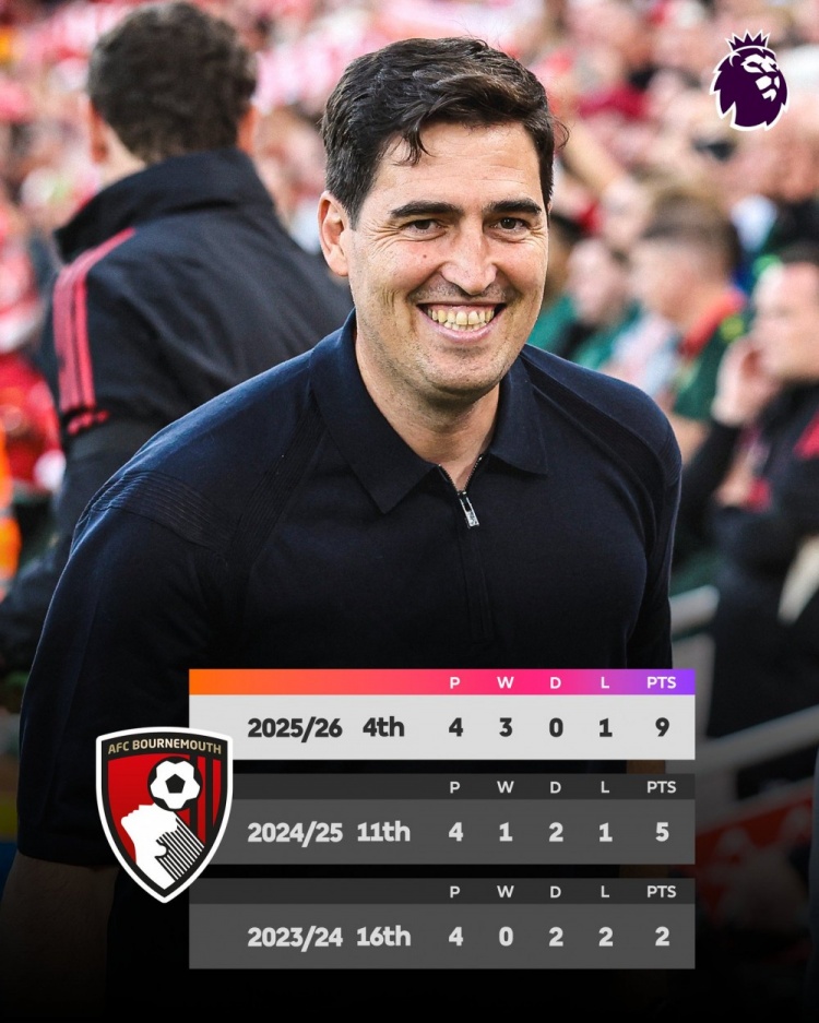伊劳拉带领伯恩茅斯前4轮拿到9分,创造队史同期最高积分纪录