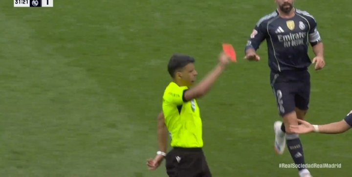09月13日讯 皇马vs皇家社会上半场,赫伊森被裁判直红罚下。专门负责分析和开发西班牙足球VAR技术的网站Archivo...