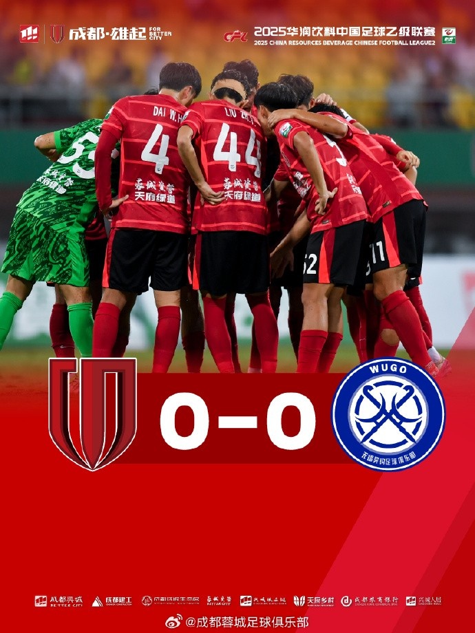 中乙联赛第25轮(决赛阶段第3轮) 成都蓉城B队0-0战平无锡吴钩