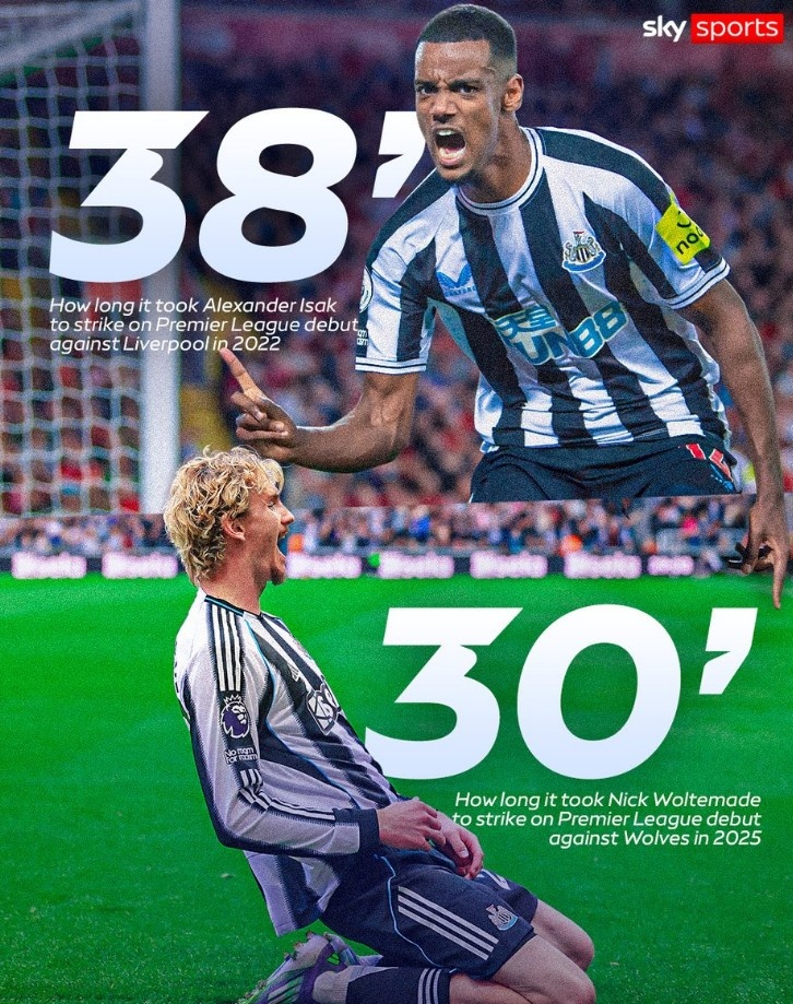 似曾相识,伊萨克纽卡首秀38分钟破门,沃尔特马德则用时30分钟