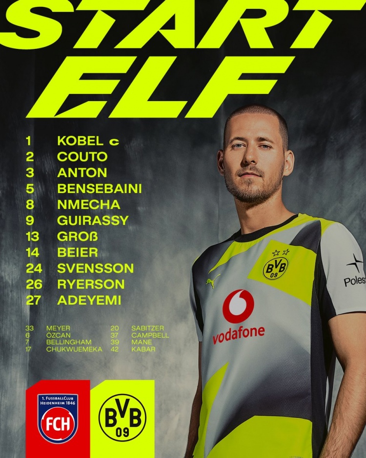 多特vs海登海姆首发:吉拉西、阿德耶米先发,A-伊布出战