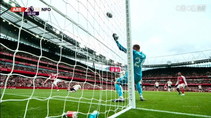 09月13日讯 英超第4轮,阿森纳vs诺丁汉森林。比赛第51分钟,伍德胸部躲闪不及形成诡异射门,砸在了阿森纳的球门横梁上...