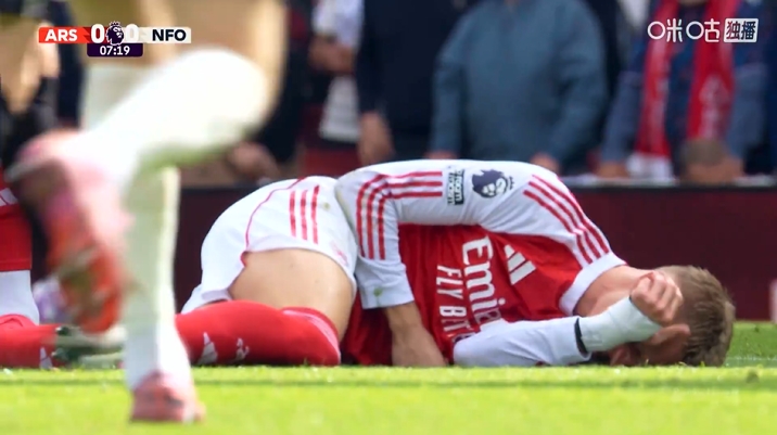 希望无碍,罗马诺:厄德高肩膀受伤,经评估后被换下场