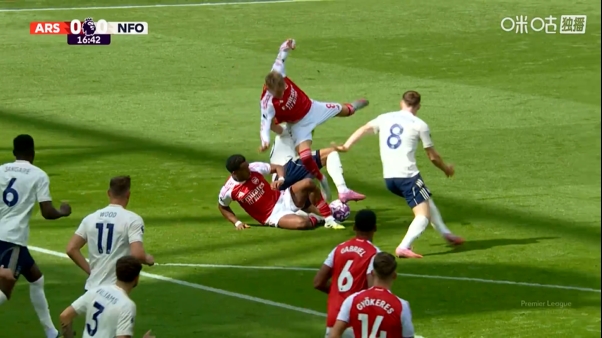 09月13日讯 英超第4轮,阿森纳vs诺丁汉森林。比赛第8分钟,阿森纳前场任意球,梅里诺小禁区攻门被挡,随后厄德高反抢被...