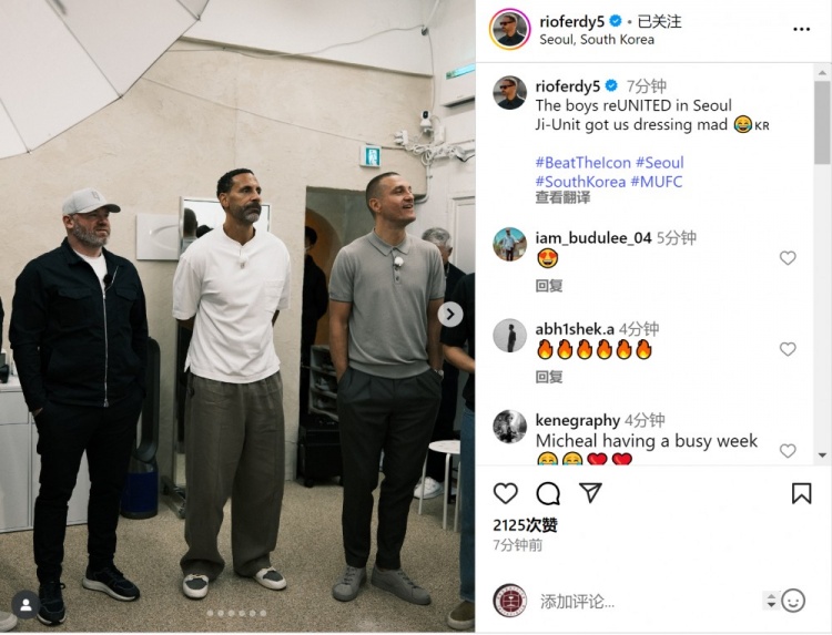 费迪南德晒与鲁尼、朴智星等老队友合照:兄弟们在首尔重聚