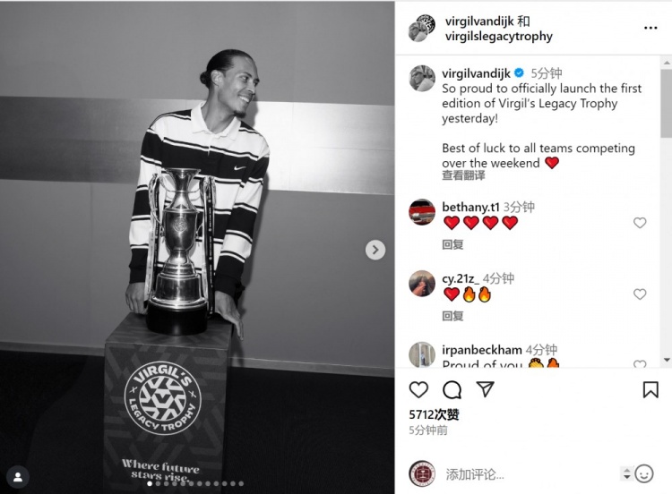 范迪克推出的青训赛事正式开启,社媒晒与奖杯合照