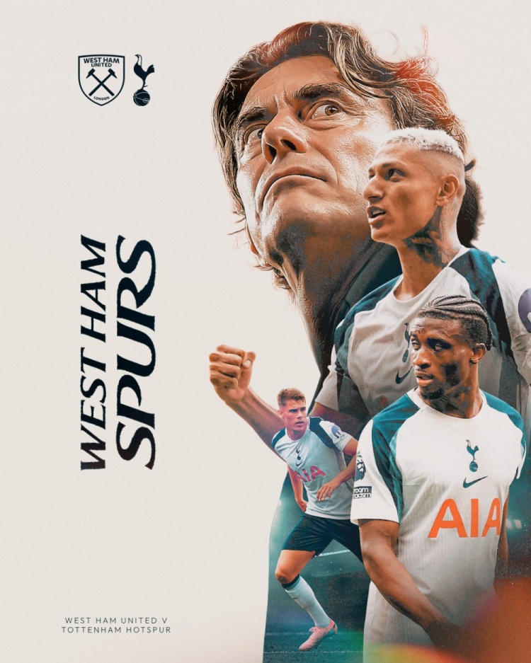 热刺发布对阵西汉姆海报:弗兰克、理查利森、范德文、库杜斯出镜