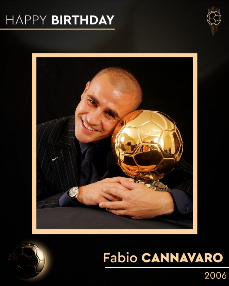 2006年金球奖得主卡纳瓦罗迎来52岁生日,金球奖官方社媒送祝福