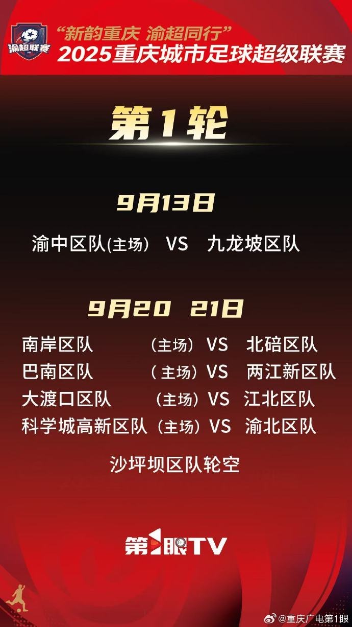 渝超对阵图出炉!9月13日首场比赛渝中队对阵九龙坡队