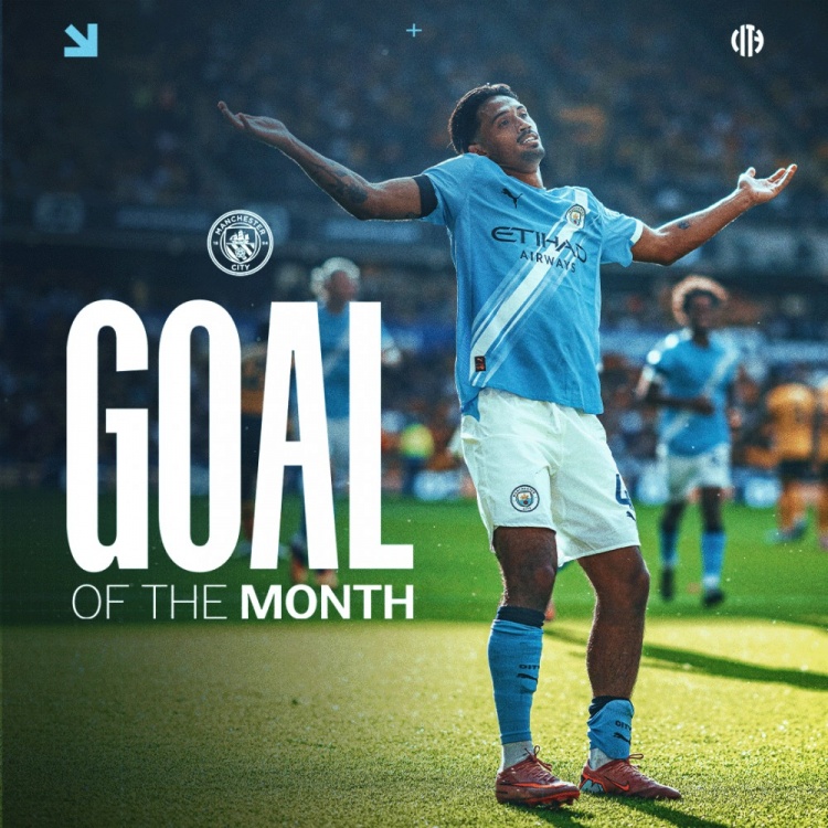 官方:赖因德斯对阵狼队的进球当选曼城队内8月最佳进球