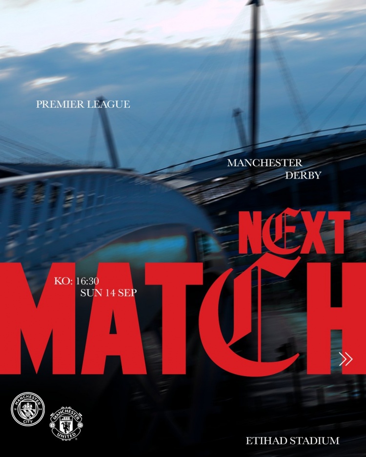 9月11日讯 北京时间9月14日23点30分,曼城将在英超第四轮比赛中主场对阵曼联。曼城官方社媒发布曼市德比海报,上面写...