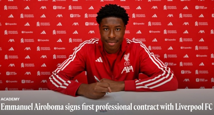 官方:18岁后卫艾罗博马与利物浦签下首份职业合同
