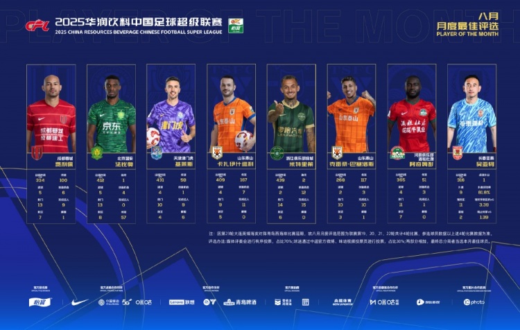 中超8月最佳候选:瓦科、米特里策、费利佩在列,吴亚轲入围