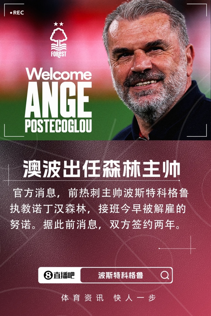 重返英超!官方:前热刺主帅波斯特科格鲁执教森林,接班努诺