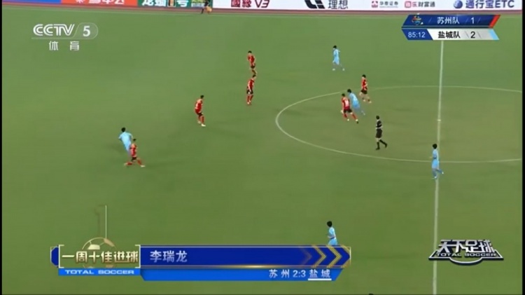 9月9日讯 最新一期《天下足球》栏目评选出足坛一周十佳球,苏超赛场上李瑞龙中圈吊射排名第一,王钰栋禁区外的暴力抽射、维尔...