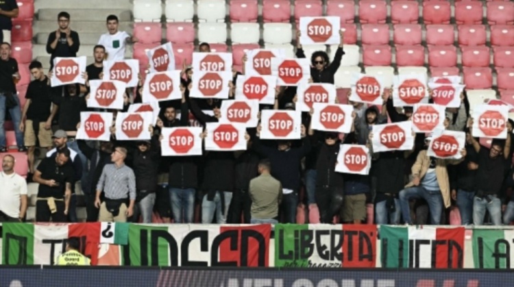 意大利球迷抗议以色列:播放国歌时转身背对+举起呼吁停战的标语