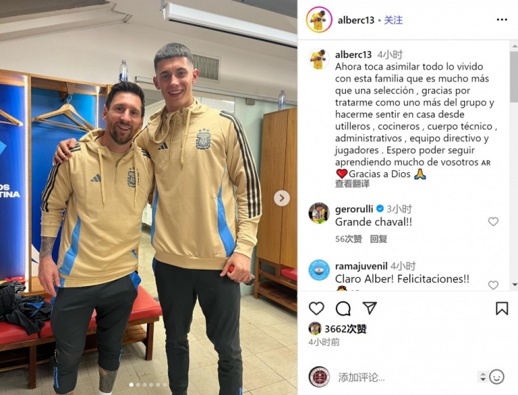 9月9日讯 皇马16岁门将卡斯特劳随阿根廷国家队训练,他在社交媒体上晒出与梅西的合照。卡斯特劳写道:“现在是时候回味与这...