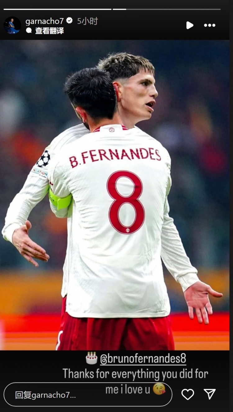 9月9日讯 加纳乔更新社媒动态,为前队友B费庆生。B费迎来31岁生日,加纳乔社媒晒出与B费在赛场拥抱的照片,配文:“🎂B...