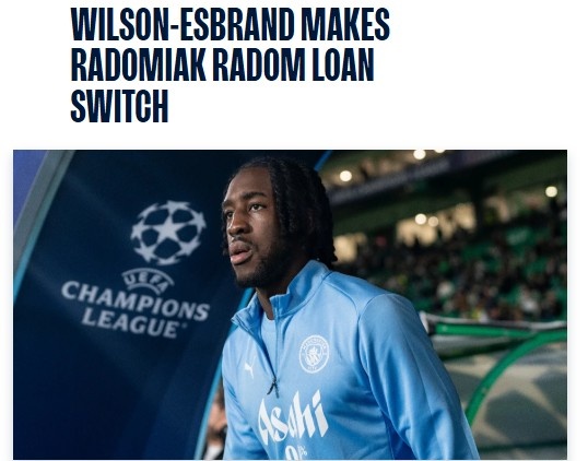 曼城官方:22岁后卫埃斯布兰德租借加盟拉多米亚克,租期一个赛季