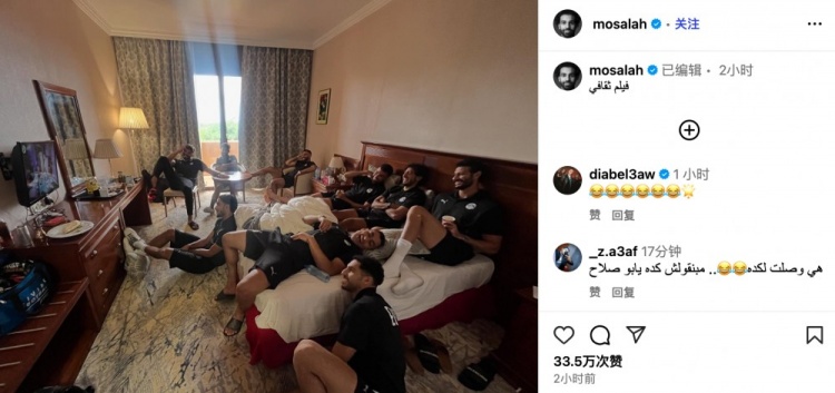 9月9日讯 利物浦边锋萨拉赫本周一在个人INS上晒图,分享了他和埃及国家队队友在一起的时光。萨拉赫的照片中出现了多位埃及...