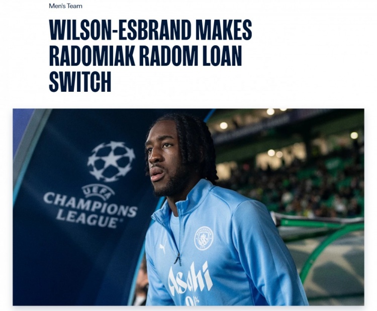 9月8日讯 曼城官宣,威尔逊-埃斯布兰德外租至波兰甲级联赛球队拉多麦科,租期为一个赛季,转会正待获得国际许可。威尔逊-埃...