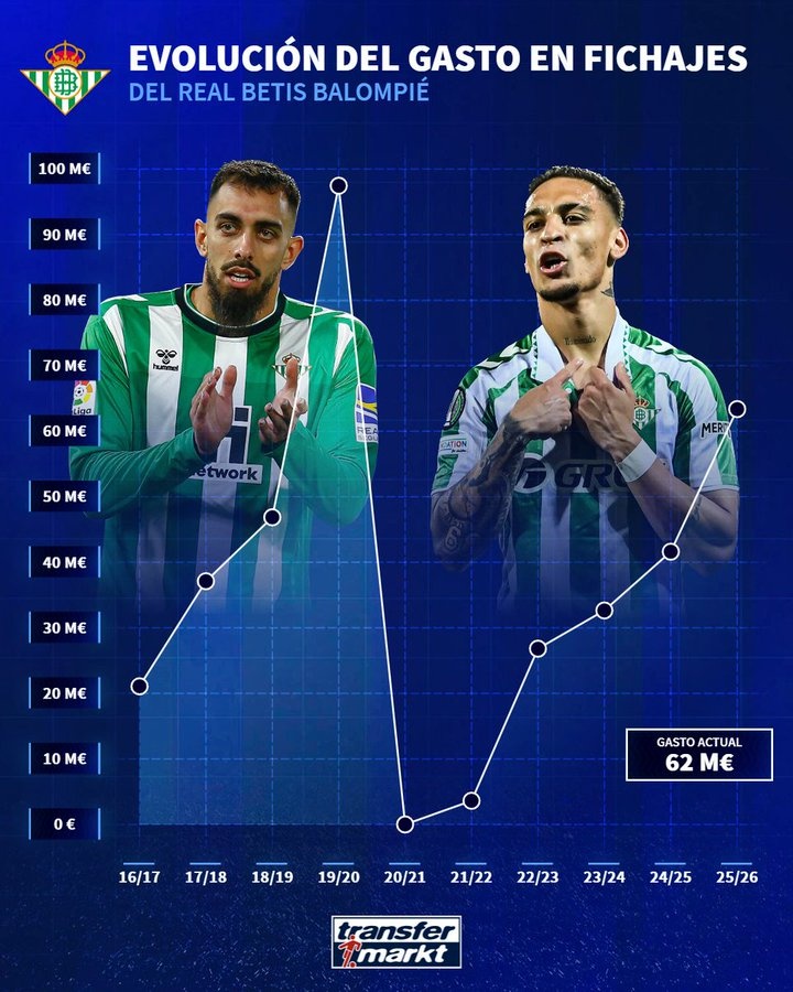 贝蒂斯今夏转会花费6200万欧,创2019/20赛季以来的球队新高
