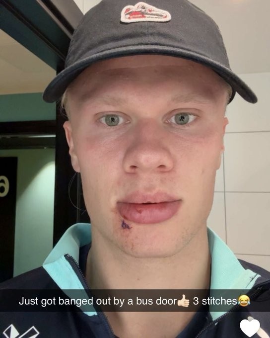 撞破下巴缝3针,哈兰德与球迷互动:被厄德高打的?没错😂