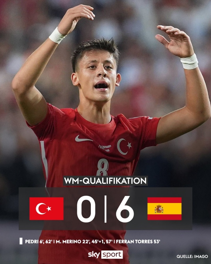 09月08日讯 世预赛欧洲区,土耳其0-6惨败给西班牙,遭遇惨痛失利。土耳其的世界排名排在第27位,尽管远远低于西班牙的...
