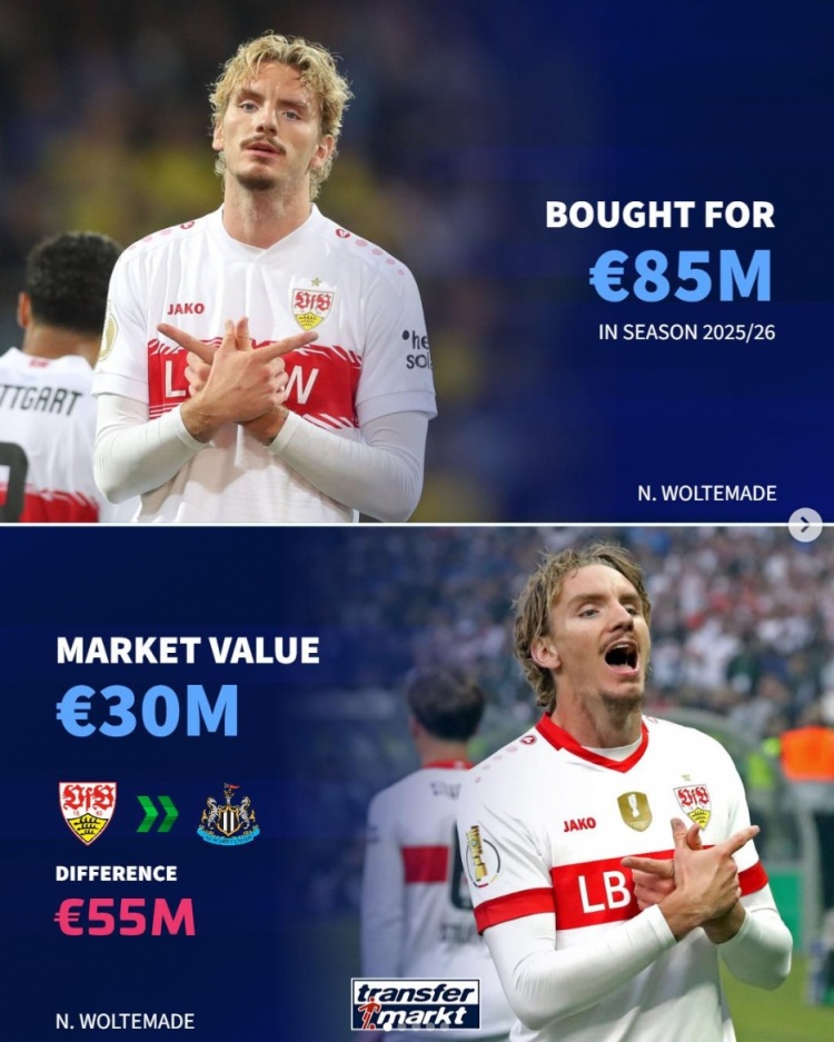 9月7日讯 《转会市场》列出了多笔今夏的重磅溢价引援,沃尔特马德、伊萨克在列。沃尔特马德(斯图加特→纽卡斯尔):身价30...