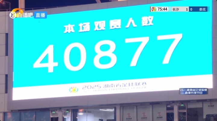 09月07日讯 湘超联赛揭幕战,长沙队vs娄底队。比赛现场广播宣布,本场比赛共有40877名观众涌入贺龙体育中心现场观...