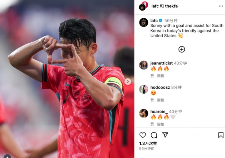 传射建功,韩足协和洛杉矶FC社媒晒孙兴慜标志性“拍照”庆祝动作