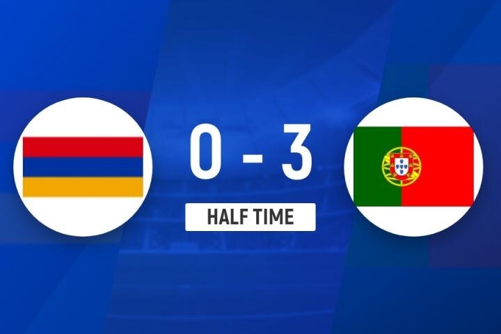 半场-葡萄牙暂3-0亚美尼亚 C罗生涯941球坎塞洛传射菲利克斯破门