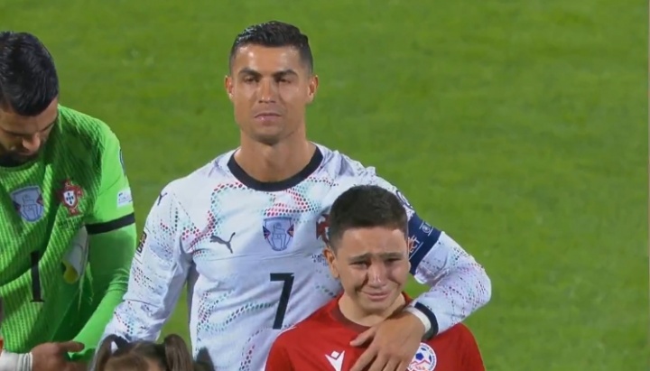 追星成功!C罗入场时带着的小球童激动得哭了出来