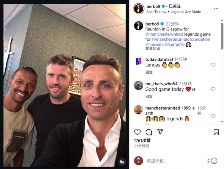 曼联球迷泪目!贝尔巴托夫社媒晒照,与卡里克&纳尼合影