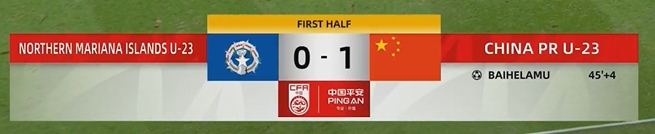 终于进了!拜合拉木上半场补时破门,U22国足1-0领先北马里亚纳