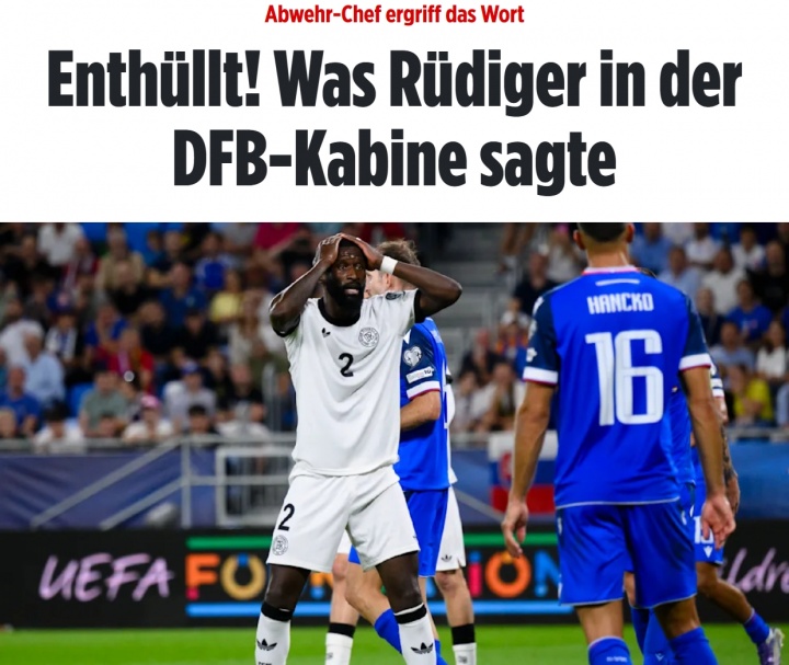 09月05日讯 今天凌晨的欧洲区世预赛,德国爆冷0-2不敌斯洛伐克,遭遇本组开门黑。据《图片报》透露,后防领袖吕迪格赛后...