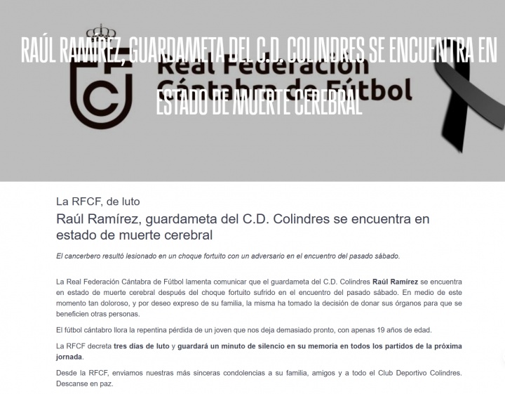 09月29日讯 西协甲球队科林德雷斯队门将劳尔-拉米雷斯因在上周六的比赛中头部受到撞击,于今晨不幸去世。据世界体育报报道...