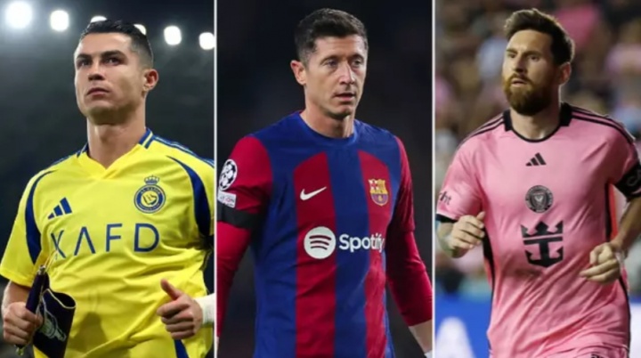 现役射手榜前十:C罗梅西前二!莱万第三,胡尔克第9内马尔第10