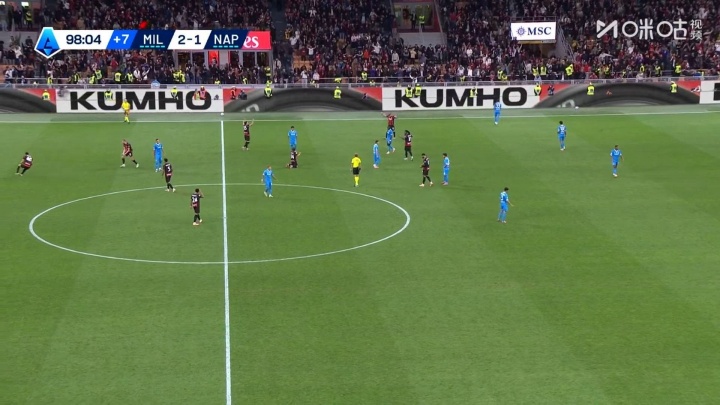 米兰2-1那不勒斯全场数据:射门6-19、预期进球0.74比2.85