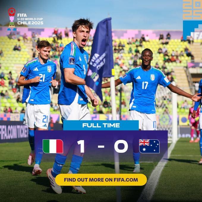 世青赛:意大利U20以1-0击败澳大利亚U20,罗马小将曼尼尼破门